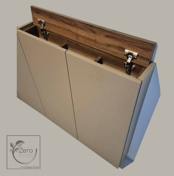Uit ons ZERO WASTE programma bieden wij deze handige schoenenkast aan voor in de hal. Deze is modulair en uit te breiden met een hoger model. Het handige van dit model is het extra sleutelvak. Bij thuiskomst kun je je sleutels gelijk uit het zicht leggen en raak je ze ook niet kwijt.
